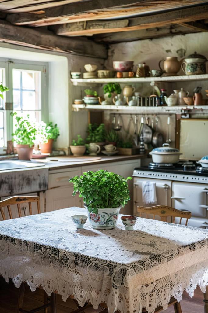 To enhance the charm, consider adding elements like vintage tableware or potted herbs. A soft throw blanket draped over a chair adds warmth, while natural light streaming through a nearby window brightens the atmosphere. You could even incorporate a small shelf for freshly baked pastries or seasonal fruits.