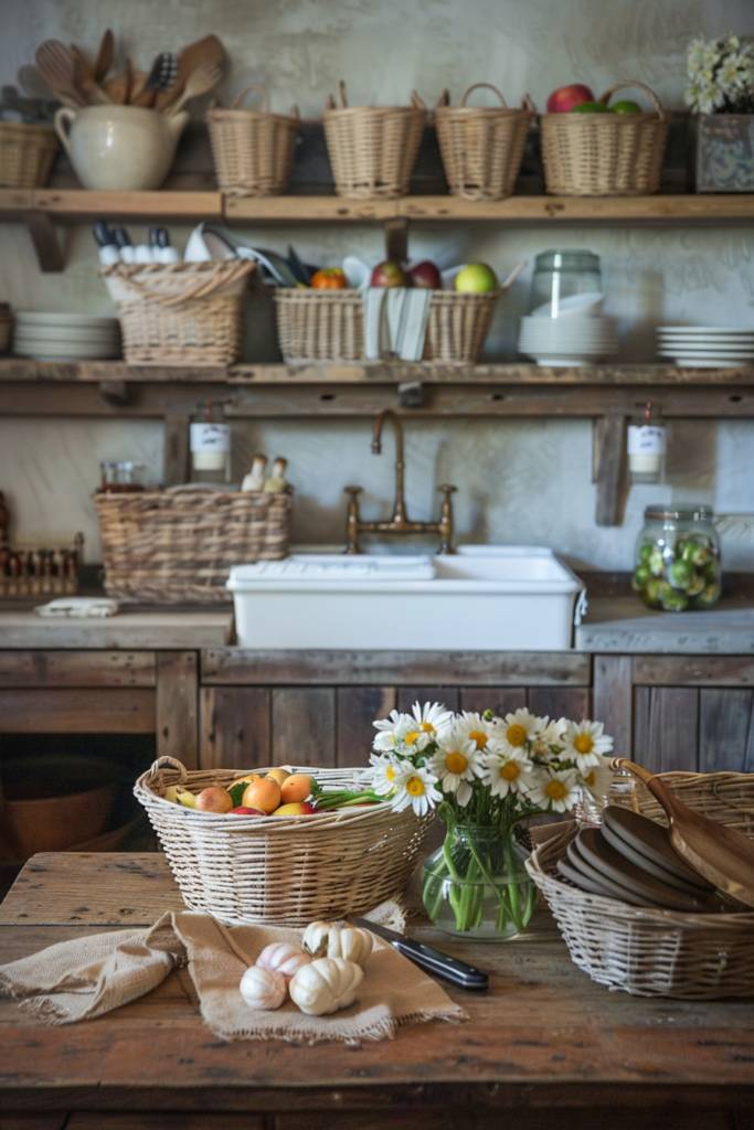 Labeling each basket can make it easy to find what you need quickly. With woven baskets, you’ll not only enhance your kitchen’s organization but also infuse it with that beloved farmhouse charm.