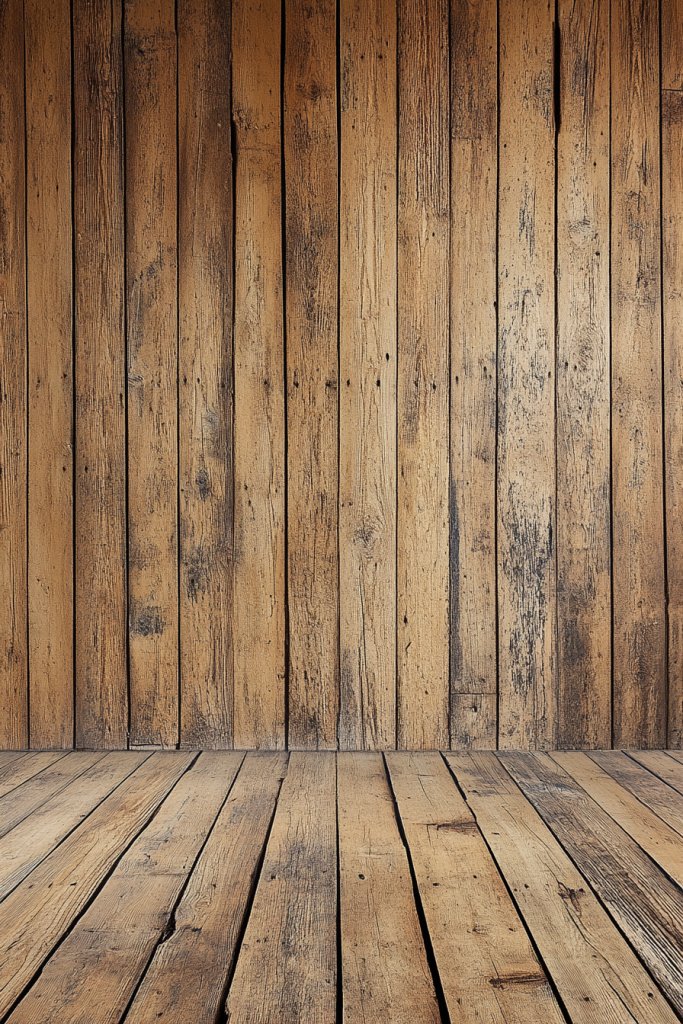 Picture a wall covered with reclaimed wood planks, arranged horizontally or vertically. The distressed finish shows peeling paint, knots, and natural imperfections that tell a story of vintage charm. It pairs beautifully with weathered furniture and woven textiles, creating a layered, inviting environment. The textured surface catches the light in subtle ways, adding depth.