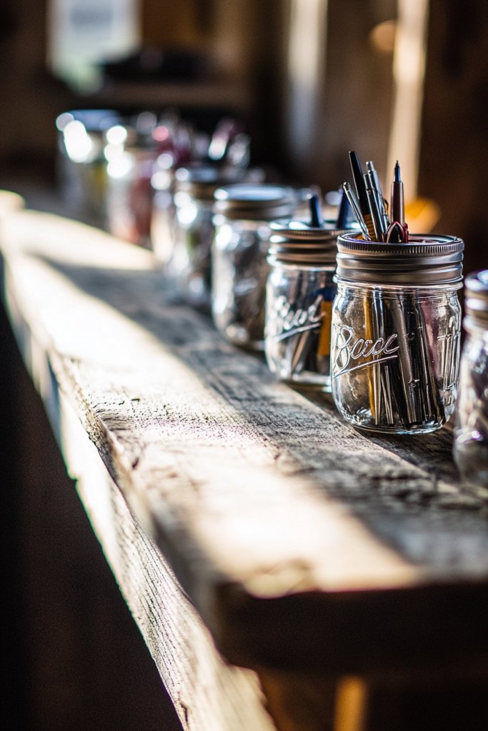 Tired of cluttered desks and losing track of your supplies? Mason jars offer a cute, practical solution to keep pens, pencils, and small tools organized. They add a rustic touch that makes even mundane tasks feel a bit more charming. Plus, they’re inexpensive and customizable—what’s not to love?