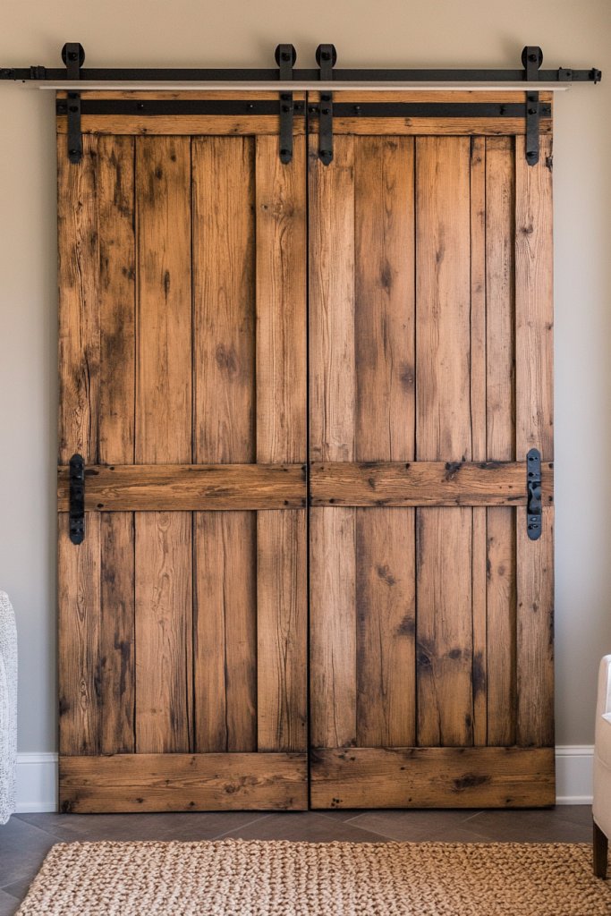 Add personal touches like vintage metal hardware or decorative brackets to enhance the rustic feel. Incorporate textured textiles like a soft cream throw blanket with chunky knit texture. Consider mounting antique lanterns or pendant lights with a distressed finish for ambient lighting. Use decorative elements such as old farm tools or wooden signs to tell your own story within the space. Small details make the overall design uniquely yours.