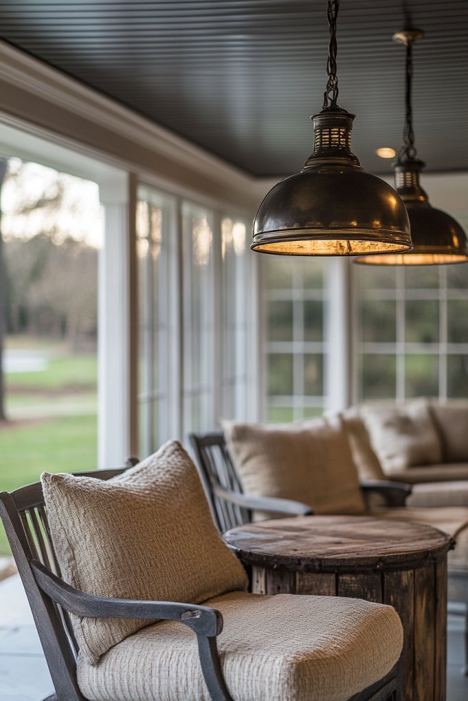 Ever noticed how lighting can make or break the farmhouse vibe? Antique-style fixtures bring instant authenticity and warmth. Whether it’s a vintage pendant or a distressed chandelier, these pieces add character and charm. They’re the finishing touch that elevates your sunroom from nice to truly farmhouse fabulous.