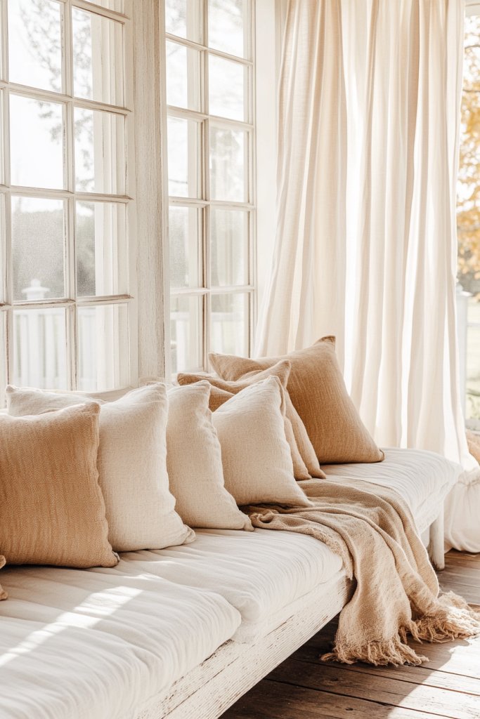 Choose furniture and decor in shades of white, cream, or taupe. Add warmth with accessories in rust, deep red, or amber. Use layered textiles—blankets, pillows, curtains—to create a cozy, inviting vibe. Incorporate metallic accents sparingly to add a touch of sophistication. Keep the overall color scheme cohesive for a seamless look. Regularly refresh accessories to keep it feeling new.