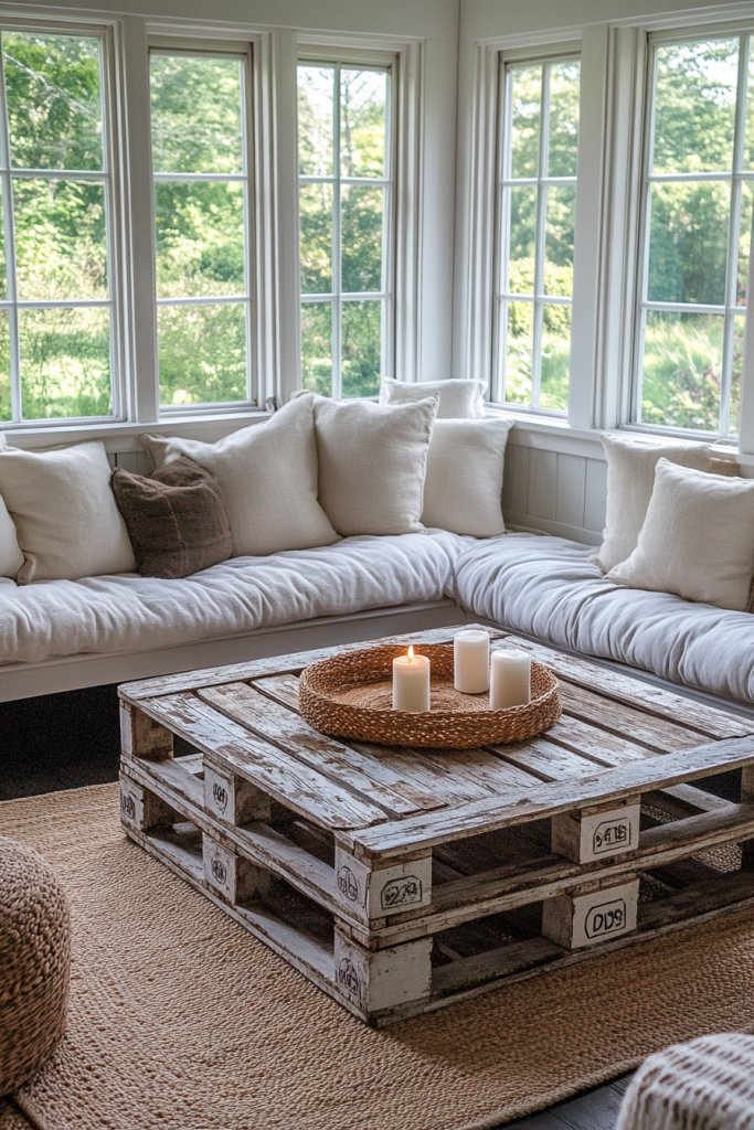 DIY pallet coffee tables embody farmhouse ingenuity and charm. They’re practical, customizable, and a fun project to undertake. Once finished, they become the heart of your sunroom, perfect for gatherings or quiet mornings. Feel confident creating your own rustic centerpiece.