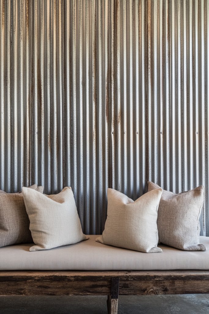 Envision a wall covered in aged, rusted corrugated metal sheets, their ridges catching the light with every shift. The raw, weathered look adds depth and a touch of rugged authenticity. When paired with reclaimed wood furniture or vintage accents, the contrast becomes striking. It’s a backdrop that feels both modern and timeless, grounding your space in rustic industrial style.