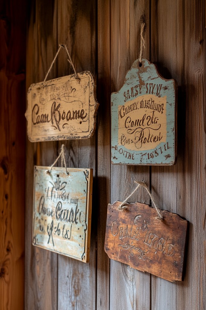 7. Vintage Farmhouse Signage and Wooden Plaques