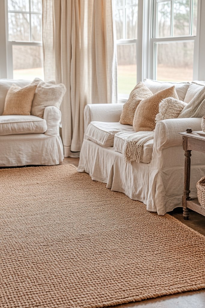Ever notice how a well-chosen rug can transform a whole room? Natural fiber rugs are the perfect finishing touch for a farmhouse sunroom, adding warmth and texture. They ground the space and create a cozy atmosphere that invites you to kick off your shoes and relax. Plus, they’re durable enough for high-traffic areas.
