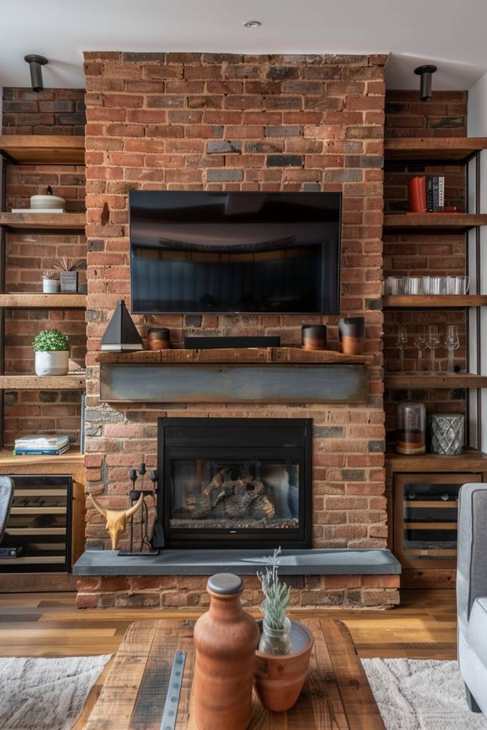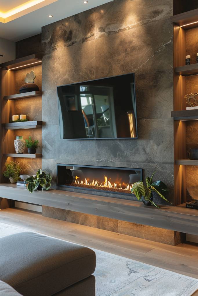 Consider varying the shelf heights to create a dynamic look, and don’t shy away from adding ambient lighting above or below to highlight your chosen decor. With this floating shelves and fireplace combo, you’ll create a harmonious balance that invites warmth and creativity into your home.