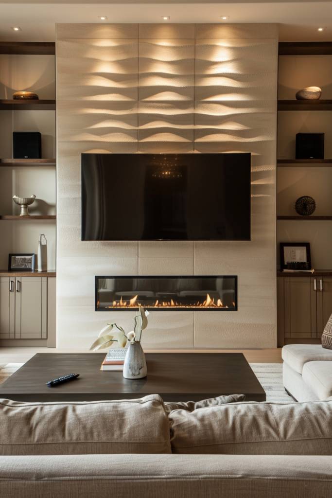 8.Textured Wall With Built-In Fireplace