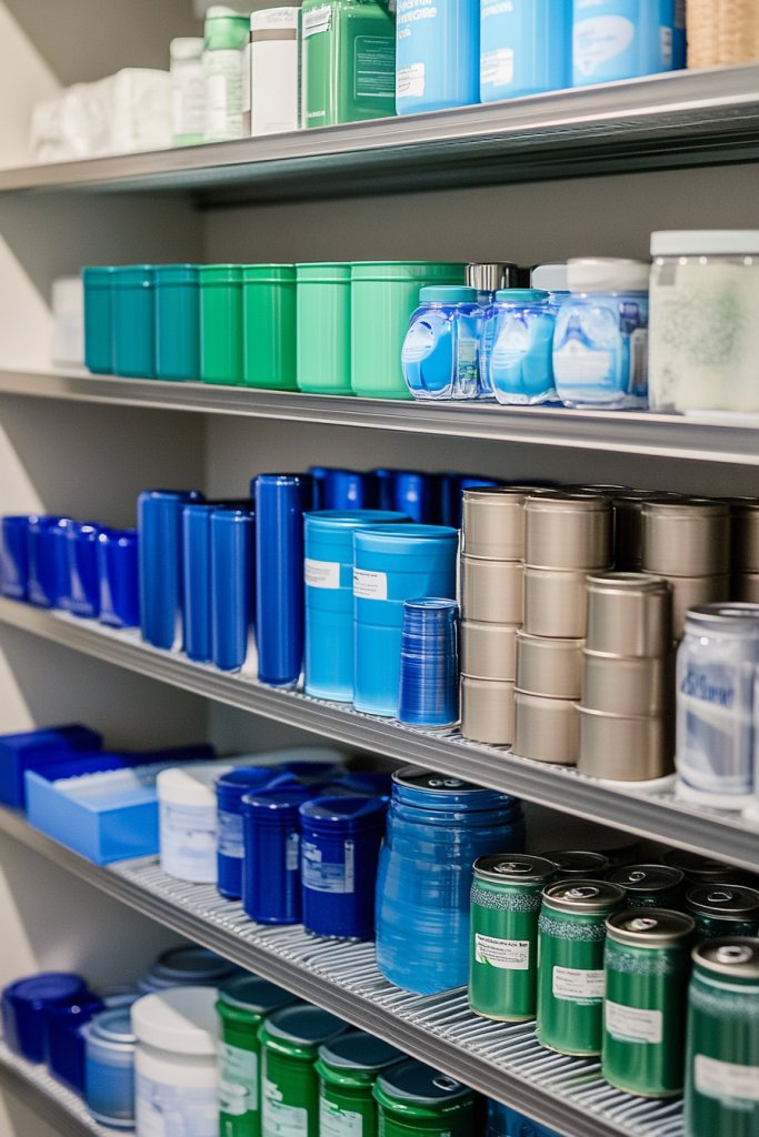 Start by sorting your items into color groups, then sourcing containers or labels in matching shades. Use paint or contact paper to recolor existing containers if needed. Arrange items by color on open shelves or inside cabinets for a clean visual flow. Label everything clearly, and periodically reorganize as your collection grows or changes.