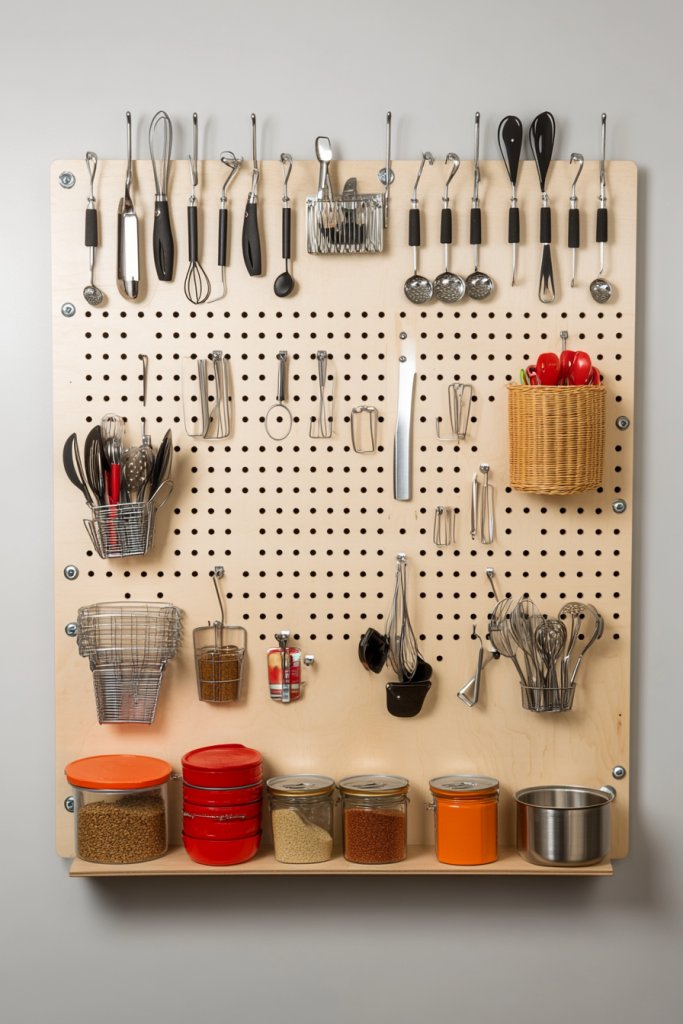 Cluttered countertops and jammed drawers make kitchen organization a nightmare. A pegboard wall transforms an empty space into a versatile, customizable storage area. It’s perfect for hanging utensils, measuring cups, or lightweight containers, keeping everything visible and accessible. Why settle for chaos when you can have a flexible system?