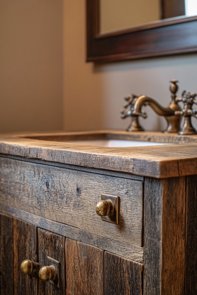 1. Reclaimed Wooden Vanity with Vintage Hardware