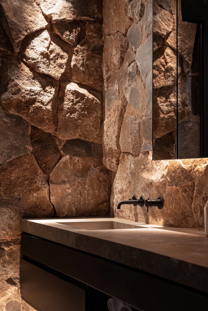 Bored of plain, flat walls in your bathroom? A textured stone or brick backsplash introduces rugged beauty and depth that instantly elevates your space. It’s a bold statement that adds authentic rustic charm, making your bathroom feel like a countryside retreat. Who knew walls could be so captivating?