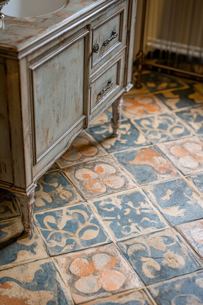 12. Hand-Painted or Distressed Floor Tiles
