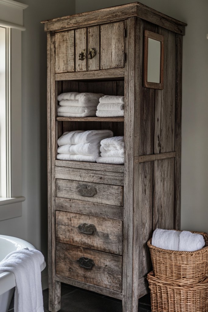 13. Incorporating a Free-Standing Rustic Linen Cabinet