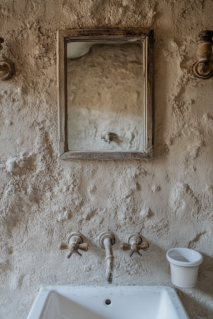 Choose from troweled plaster, stucco, or Venetian finishes depending on the desired texture and look. Keep the palette in soft neutrals, warm creams, or muted earth tones to enhance the rustic feel. Finish with a matte sealant to preserve the texture and prevent moisture issues. For accent walls, consider a slightly more pronounced texture or a subtle color variation for added depth.
