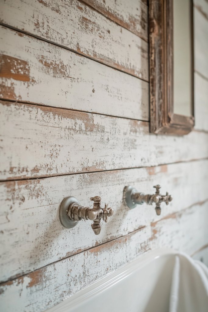 Choose between painted, stained, or lightly tinted shiplap depending on your preferred look. Some opt for a heavily distressed finish for a more aged appearance, while others prefer a cleaner look with minimal distressing. It works well in small bathrooms as well as larger spaces, providing a cozy backdrop. Complement with beadboard or tongue-and-groove paneling for added detail.