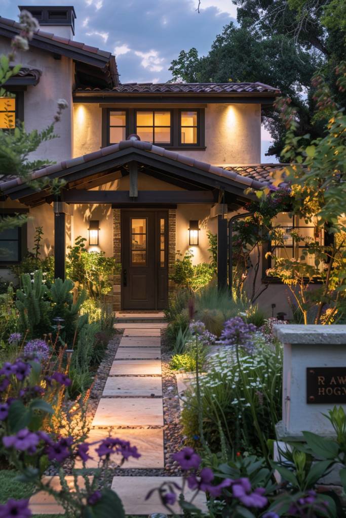 Lighting plays an essential role too; strategically placed lanterns or solar lights can illuminate the path and provide safety at night. Adding greenery along the sides, such as low-maintenance shrubs or seasonal flowers, not only adds color but also frames the pathway beautifully.