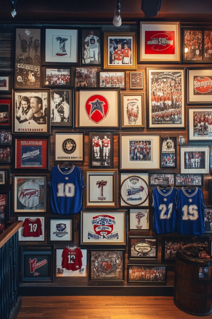 Want to showcase your team pride prominently? A sports team wall of fame creates an energetic atmosphere packed with team spirit. It’s perfect for fans who want their room to reflect their allegiance and passion. Who says you can’t display your loyalty loud and proud?