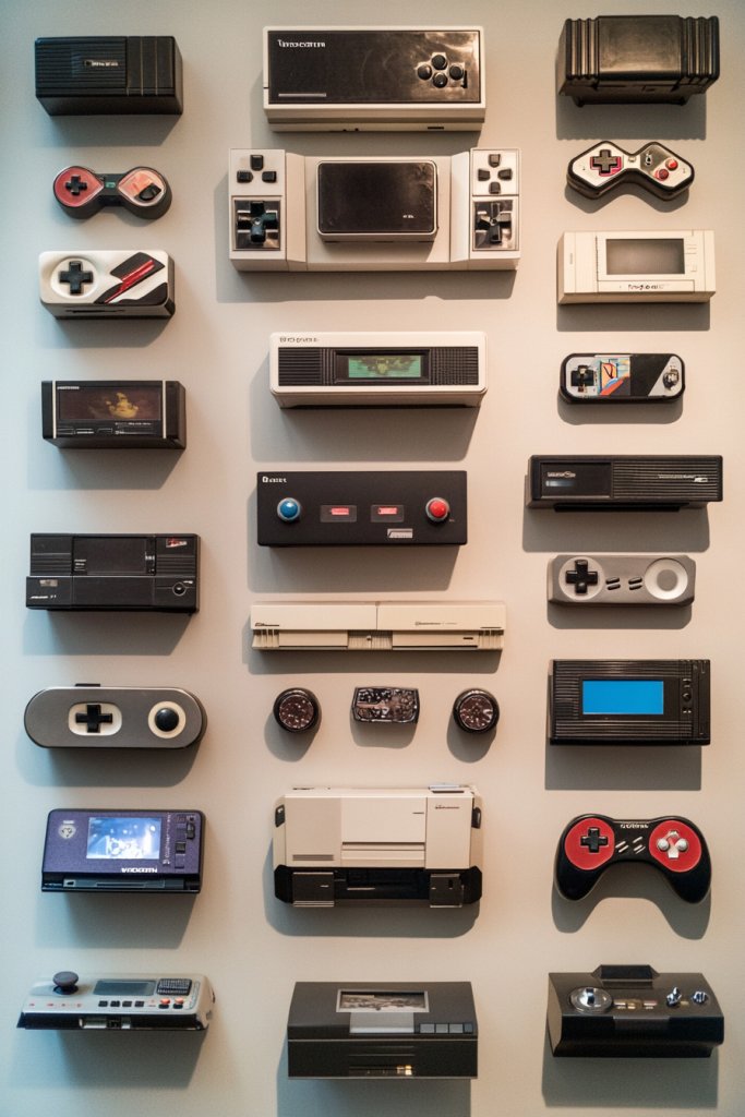 This collage celebrates gaming’s evolution and your personal history. It’s a creative project that enhances your space while honoring your passions. Seeing your favorite consoles displayed artfully can inspire future gaming adventures. Ready to craft your own vintage tribute?