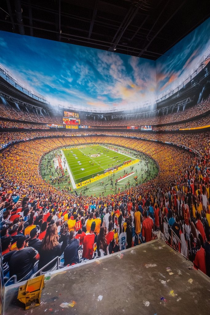 Start with large-scale wallpaper murals or hand-paint the scene for a personal touch. Use high-quality paints and brushes for detailed elements like crowd faces or scoreboard details. Incorporate perspective techniques to create depth. Layer different elements—background, midground, foreground—for realism. Protect your mural with a clear, matte finish to prevent fading.