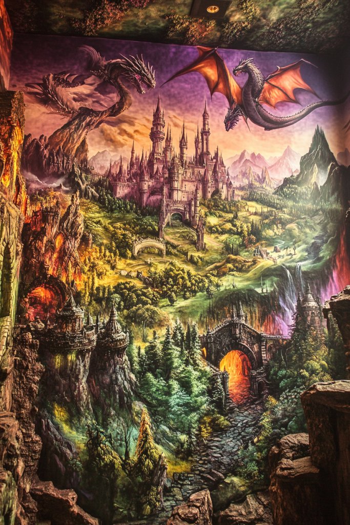 Opt for a panoramic scene for full room coverage or a smaller, focused vignette for a subtle touch. Style with textured paints or metallic accents to enhance details. Incorporate elements like floating islands or glowing runes for a fantastical feel. Seasonal themes, like a wintery dragon fight or a fairy forest, keep it fresh.