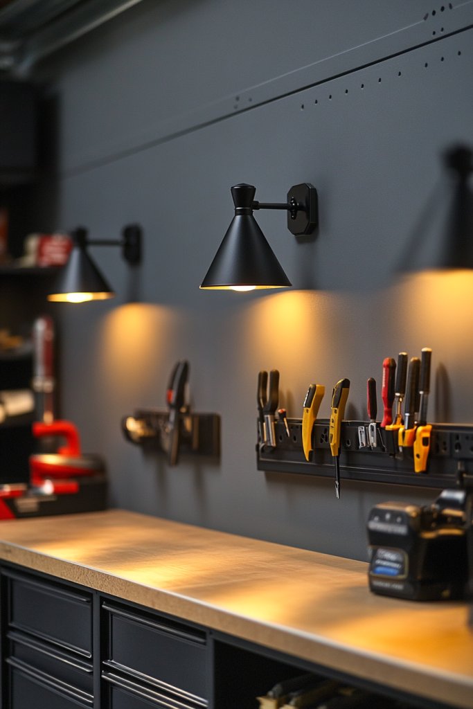 Want to add a touch of elegance or accent to your garage? Wall-mounted sconces provide focused, stylish lighting that enhances specific areas or features. They’re perfect for highlighting work zones, storage, or even decorative elements. Plus, they add a layer of sophistication to an otherwise utilitarian space.