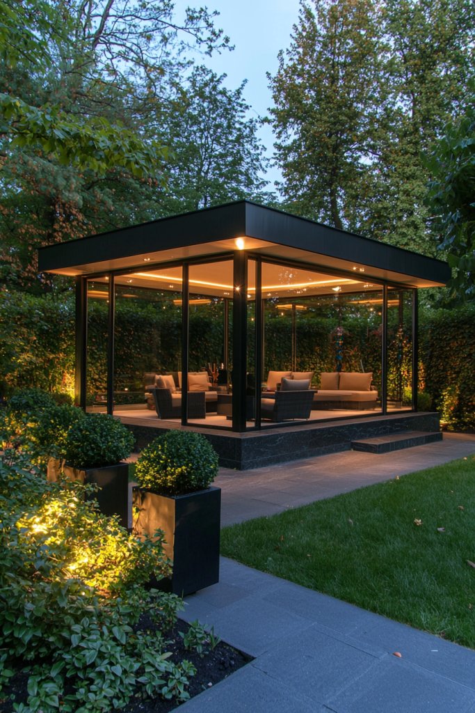 15. Contemporary Glass Gazebo for Stylish Protection
