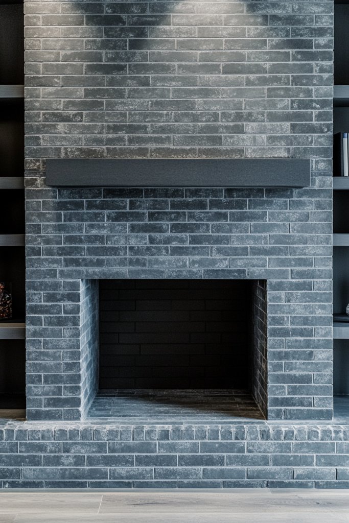 Want a fireplace that’s subtle yet visually striking? A dual-color gray brick fireplace uses contrasting mortar lines or joint colors to highlight the pattern and add modern detail. It’s an easy upgrade that transforms plain bricks into a sophisticated feature.