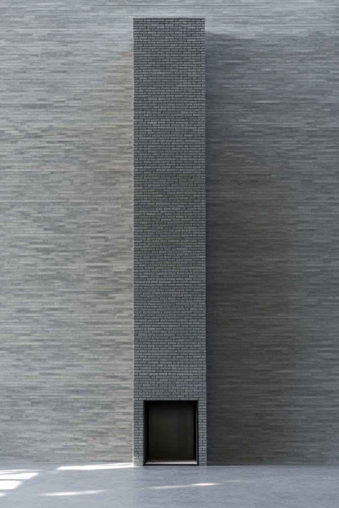 Imagine a slender column of textured gray bricks reaching from floor to ceiling, with a slim hearth at the bottom. The vertical bricks draw the eye upward, creating a sense of height and grandeur. The simplicity of the design keeps it unobtrusive yet striking, especially when paired with minimalist decor and subtle lighting. It’s a statement of elegance in a compact form.