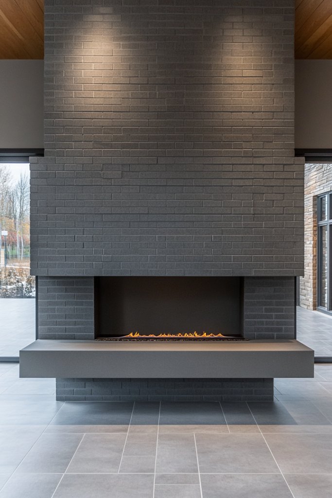 Looking for a fireplace design that adds height and elegance without taking up too much floor space? A tall, narrow gray brick fireplace emphasizes verticality, making your room feel taller and more refined. It’s a chic solution for modern apartments or rooms with limited width.