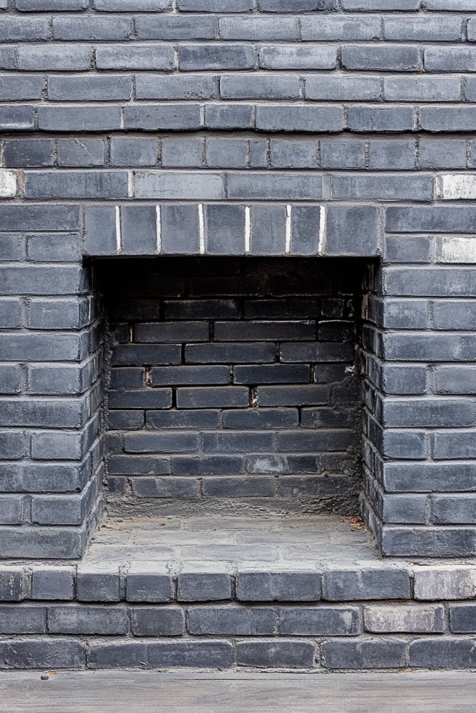 18. Dual-Color Gray Brick Fireplace with White Mortar Lines