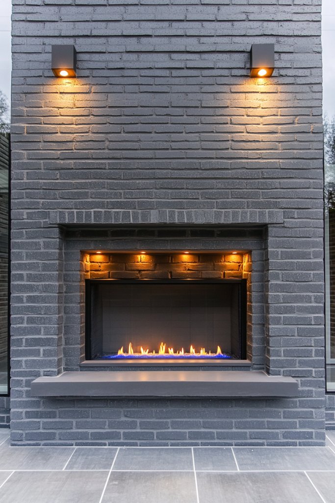 Want to highlight your fireplace’s texture and warmth at night? Recessed lighting installed within or above the gray brick surround creates a cozy, inviting atmosphere. It’s an easy upgrade that adds depth and ambiance, perfect for relaxing evenings or entertaining guests.