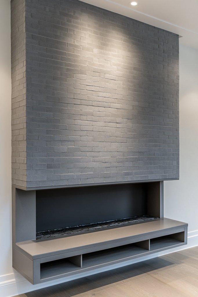 Craving a modern fireplace with an airy, open feel? A floating hearth in matching gray brick creates a sleek, minimalist look that feels light and spacious. It’s perfect for open-concept living spaces or those who want a contemporary aesthetic without heavy visual weight.