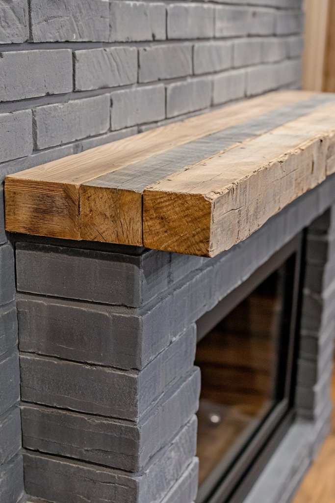 Looking to combine modern minimalism with warm rustic charm? A gray brick fireplace paired with a reclaimed wood mantel strikes that perfect balance. It adds texture and character, making your fireplace a cozy yet stylish focal point. Ideal for those who love a blend of industrial and natural elements.