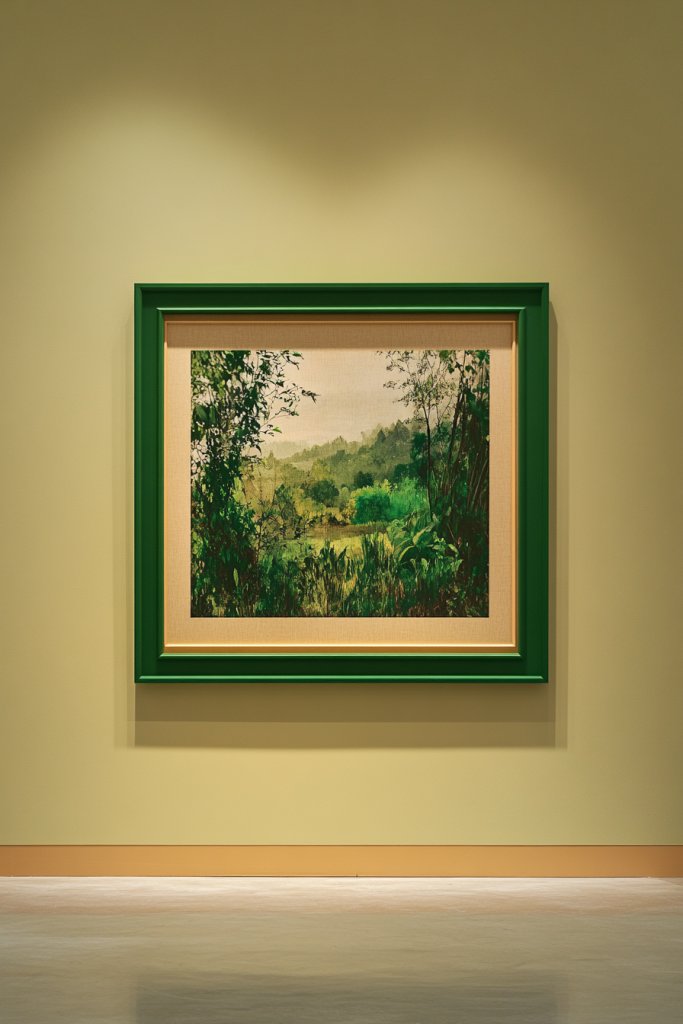 13. Showcasing Nature-Inspired Art with Green and Tan Framing