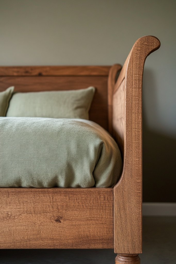 Ever struggle to find a bed that feels both rustic and refined? A wooden bed frame with subtle green upholstery strikes the perfect balance between nature-inspired charm and modern elegance. It’s like bringing a piece of the forest into your bedroom while maintaining a chic, clean look. The goal is to create a restful haven that feels grounded and inviting.