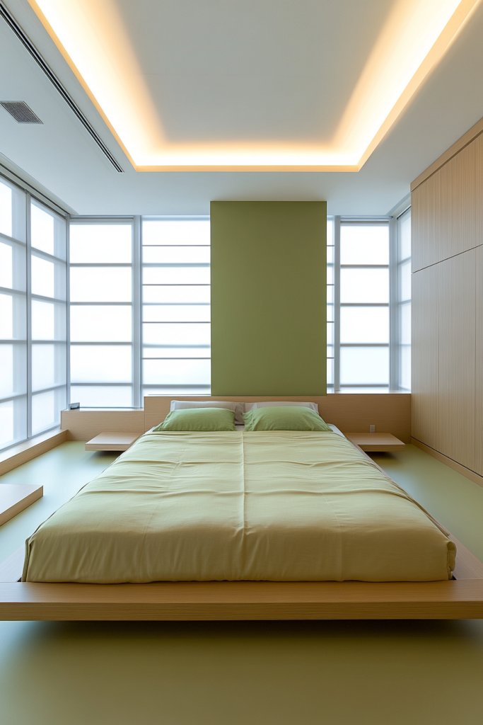 Add a few statement pieces like a sculptural side table or a textured headboard in green fabric. Incorporate subtle decorative elements like a single geometric vase or a sleek mirror. Keep personal items hidden in discreet storage to sustain the clean look. Let your space breathe by avoiding over-accessorizing.