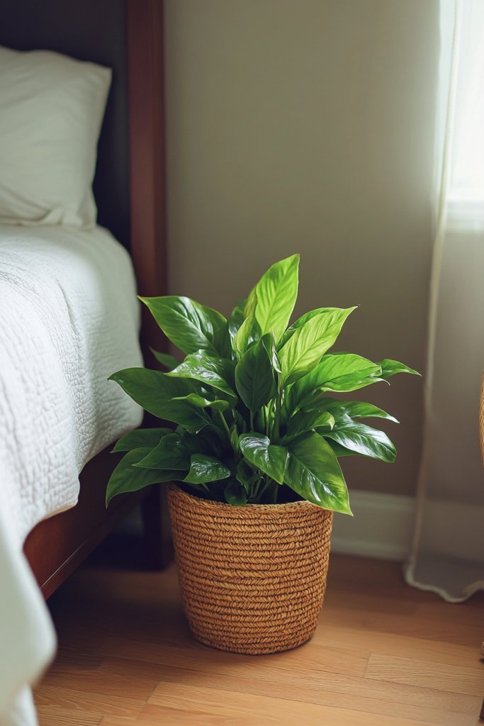 Select healthy plants suited for indoor environments and your light conditions. Place them in tan planters that complement your decor style—smooth, textured, or patterned. Position larger plants on the floor and smaller ones on shelves or bedside tables. Water them regularly and consider using self-watering pots for ease. Combine different leaf shapes and shades for a layered effect.