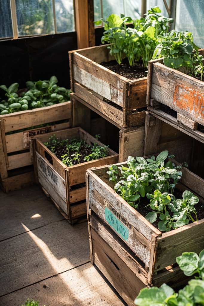 10. Use of Reclaimed Wooden Crates as Plant Containers