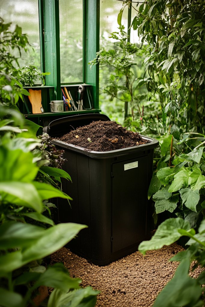 Choose from countertop or floor models, depending on space. Use decorative bins with labels or paint them to match your greenhouse decor. Incorporate a compost aerator or turning tool for faster decomposition. During colder months, insulate or move the bin indoors for continued activity. Keep a small container nearby for kitchen scraps, making composting part of your daily routine.