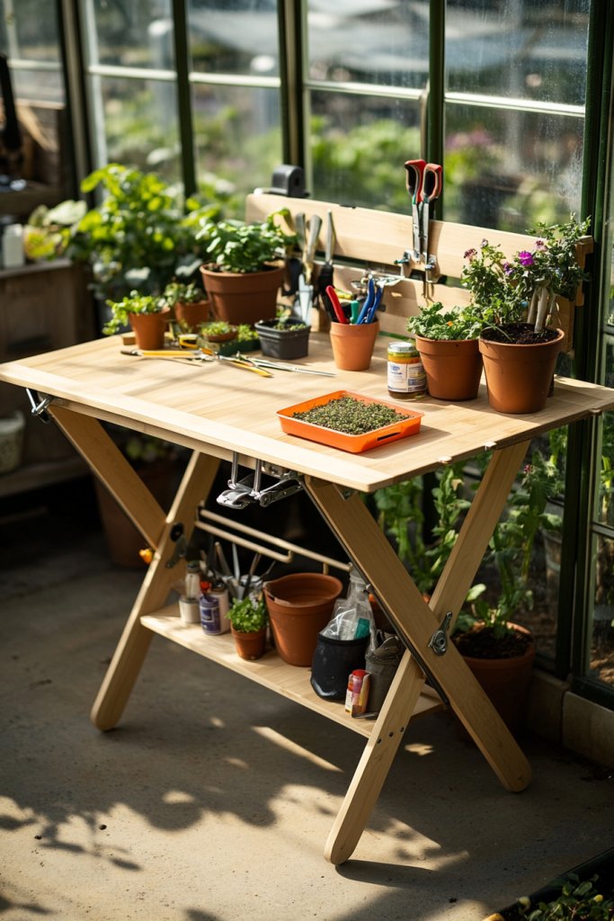 A cluttered workspace hampers productivity and makes gardening feel chaotic. A folding work table offers a versatile, space-saving solution that can serve as a potting station, prep area, or display surface. Who doesn’t want a flexible workspace that can hide away when not in use?