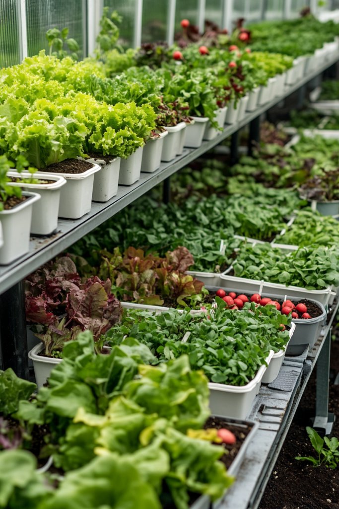 Visualize lush beds of crisp lettuce, peppery radishes, and fragrant basil thriving in your greenhouse. These plants grow quickly, resist pests, and require minimal pruning or feeding. Their vibrant greens and reds brighten up your space, creating a lively, productive environment. The ease of care means you spend more time enjoying harvests and less time battling problems.