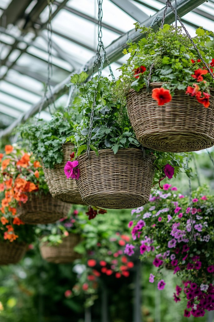 Horizontal space in a greenhouse is precious, but vertical space is often underused. Hanging baskets allow you to add a splash of color and greenery without sacrificing valuable floor or shelf area. They create a lush, layered look that’s both functional and attractive. Who doesn’t love a vibrant cascade of trailing plants?