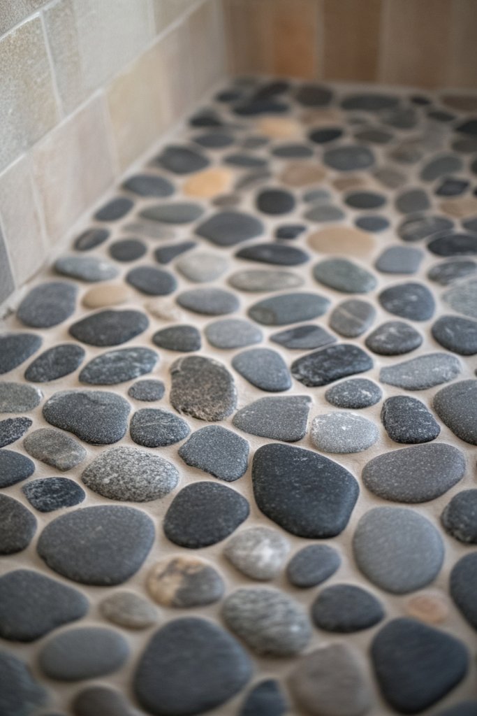 12. Grey Stone or Pebble Shower Floor for Natural Texture