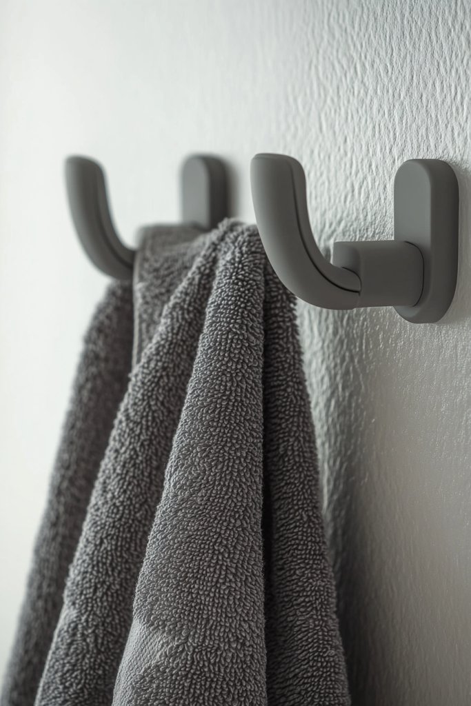 13. Minimalist Grey Towel Hooks and Accessories