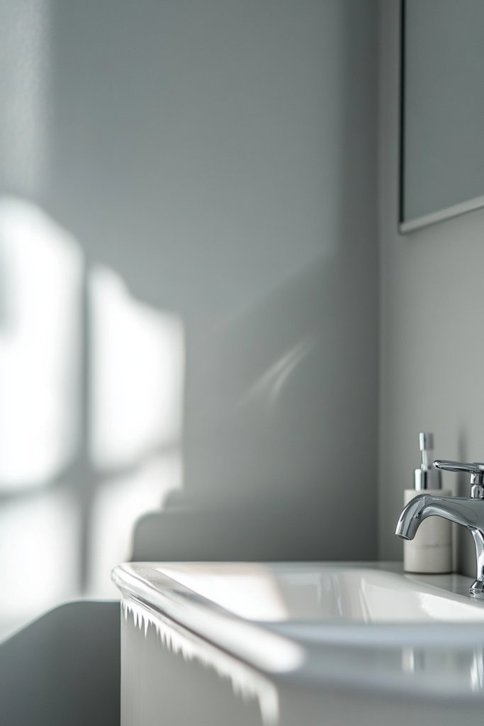 Struggling to find the right wall color that’s subtle but sophisticated? Light grey paint with a satin or eggshell finish is your answer. It reflects light softly and adds a touch of understated elegance. It’s a versatile base that complements almost any tile, fixture, or accessory.