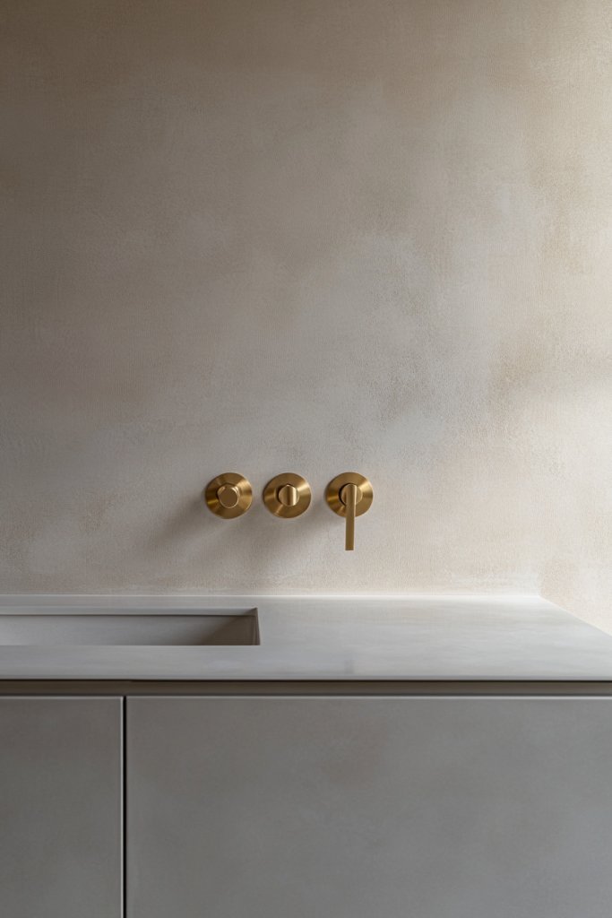 Select a vanity with clean lines and durable finishes suitable for humid environments. Mount it securely to the wall if floating, or install on a sturdy base if traditional. Attach minimalist brass handles or pulls, ensuring they’re easy to grip and complement the overall look. Seal the surface properly to prevent water damage, and choose matching fixtures for a cohesive appearance. Use a level during installation for perfect alignment.