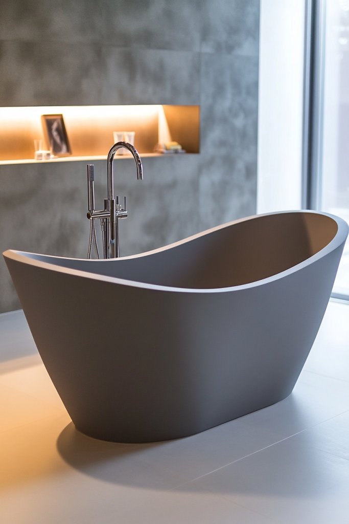 7. Modern Grey Freestanding Bathtub as a Statement Piece