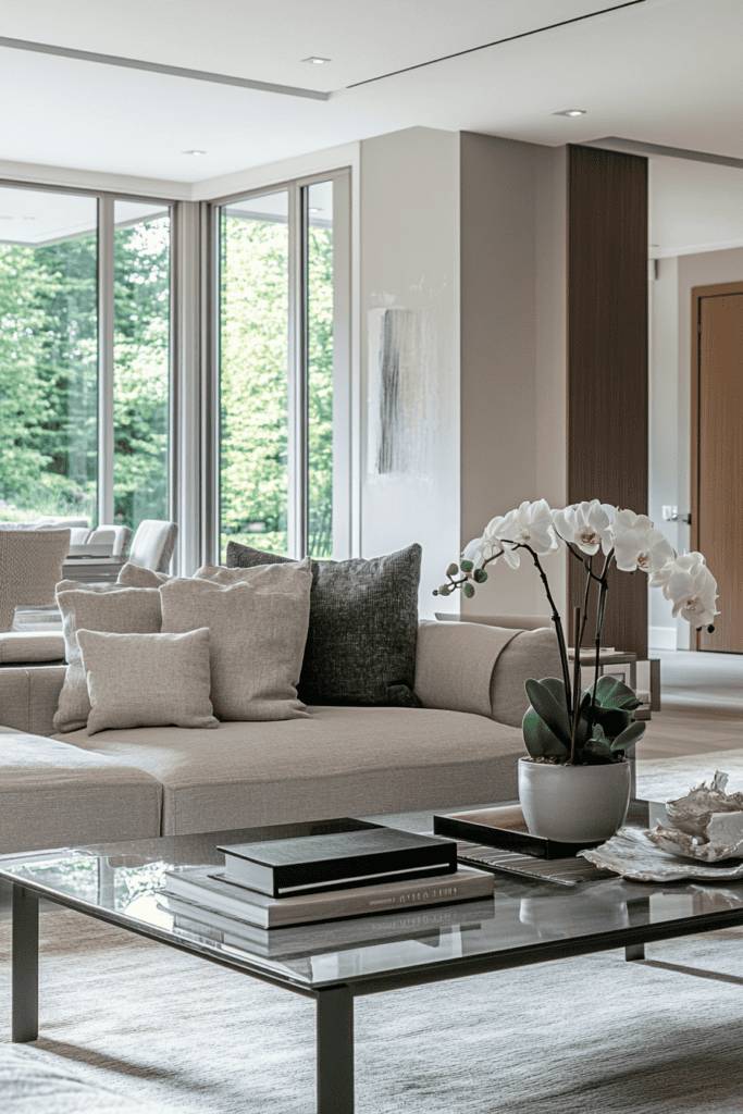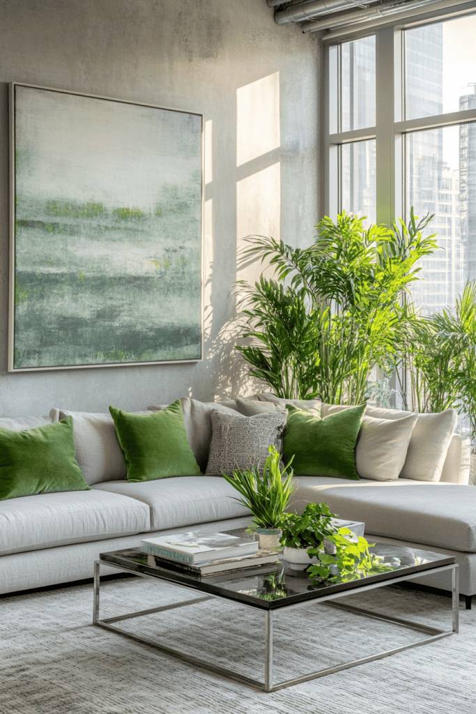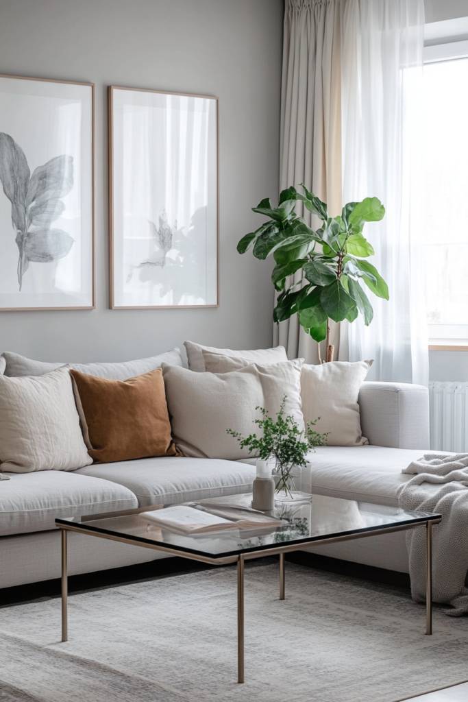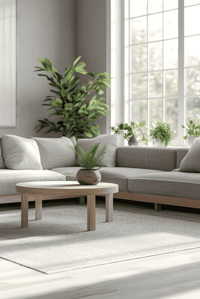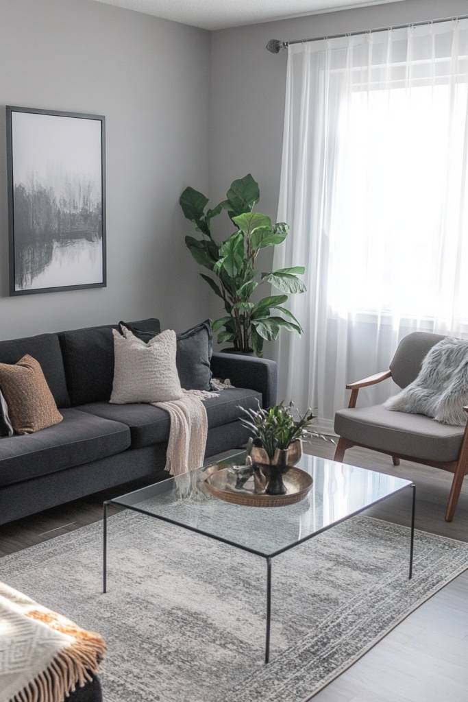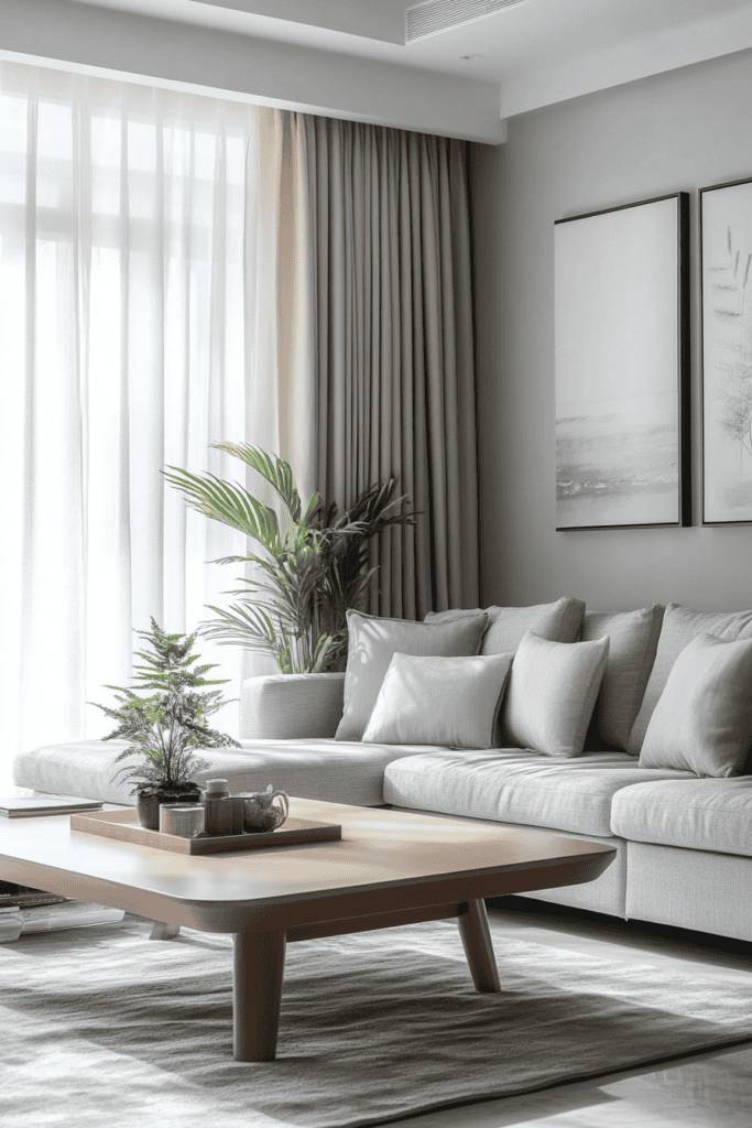 Finally, consider accentuating the room with greenery. Plants not only add a pop of color but also bring life to your airy grey theme, making your living room a calming retreat you’ll love spending time in.